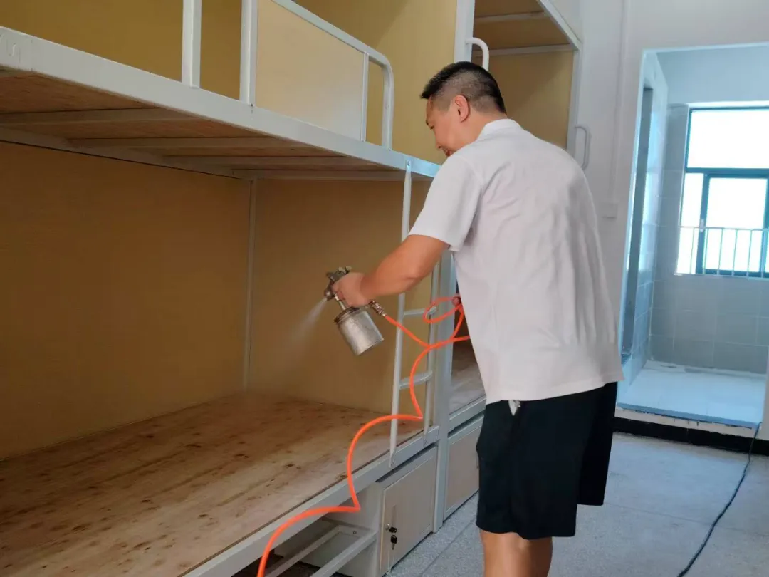 针对新建及装修区域可能存在的甲醛等空气污染风险,学校组织专业团队,对教学楼、宿舍等重点空间开展了全面、深度的空气治理。治理采用高效安全的技术工艺,确保药剂彻底分解甲醛且无任何二次污染。整个治理过程操作规范严谨,目标是在开学前,使所有治理区域的空气质量持续优于国家规定标准,全力为师生营造健康安全的呼吸环境。